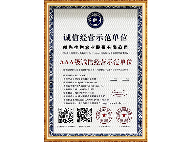 AAA級(jí)誠信經(jīng)營示范單位