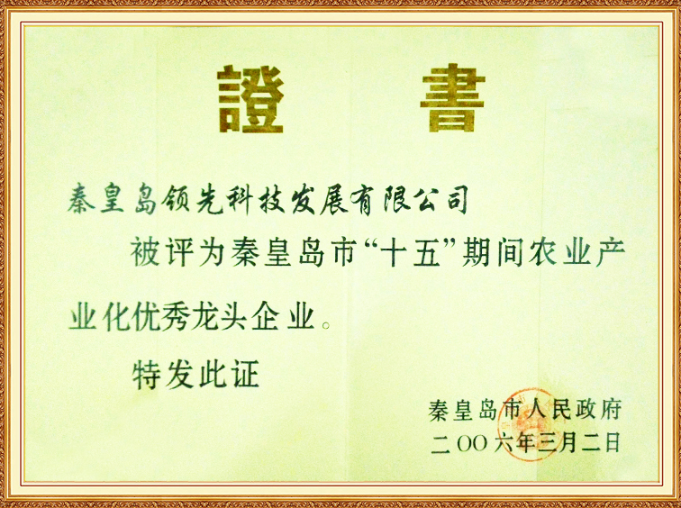 秦皇島“十五”期間農(nóng)業(yè)產(chǎn)業(yè)化龍頭企業(yè)